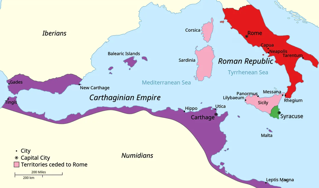 And their main opponent is going to be Carthage, city located in North Africa, modern day Tunisia, which controls that whole chunk of North Africa, along with projecting overseas power across much of the Western Mediterranean. So these are the two largest states in the Western Mediterranean going head to head. Albeit, interestingly, in a war that neither of them seem to have expected at the outset to be a big deal. This is not a fully unintended war. But but a war that got out of control for both parties.